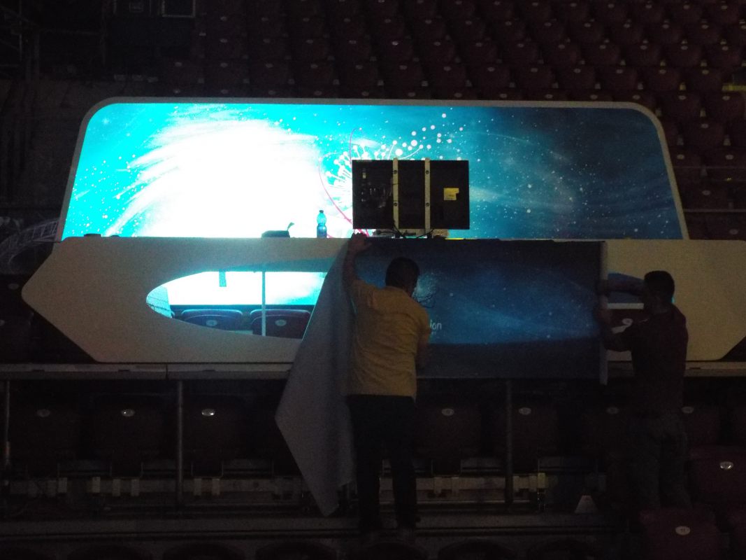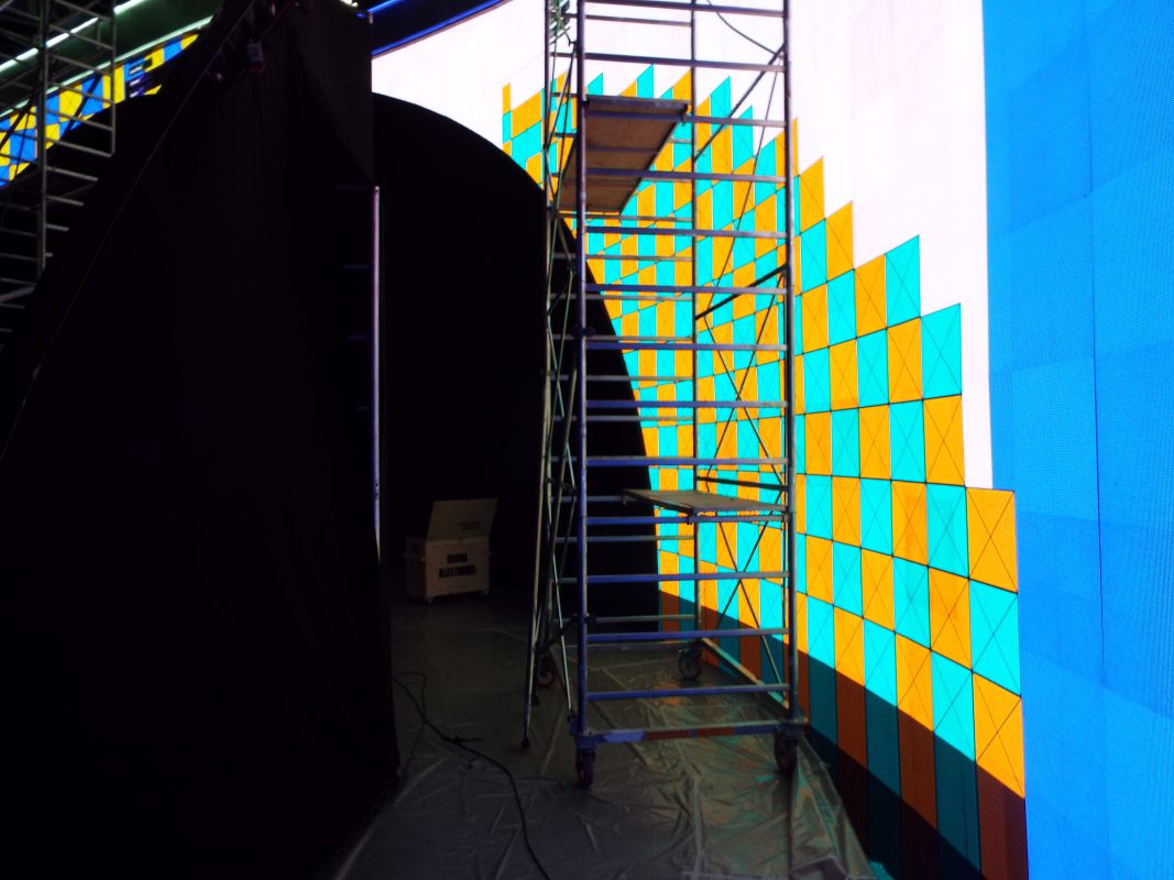 Se han acabado de colocar las pantallas laterales y del fondo y las pasarelas de cada lado, además de la pastilla central.