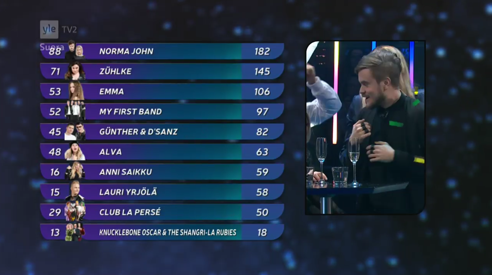 La televisión finlandesa YLE ha celebrado esta noche la final del UMK 2017 con el objetivo de seleccionar al próximo representante del país en el Festival de Eurovisión, que este año se celebrará en Kiev (Ucrania).